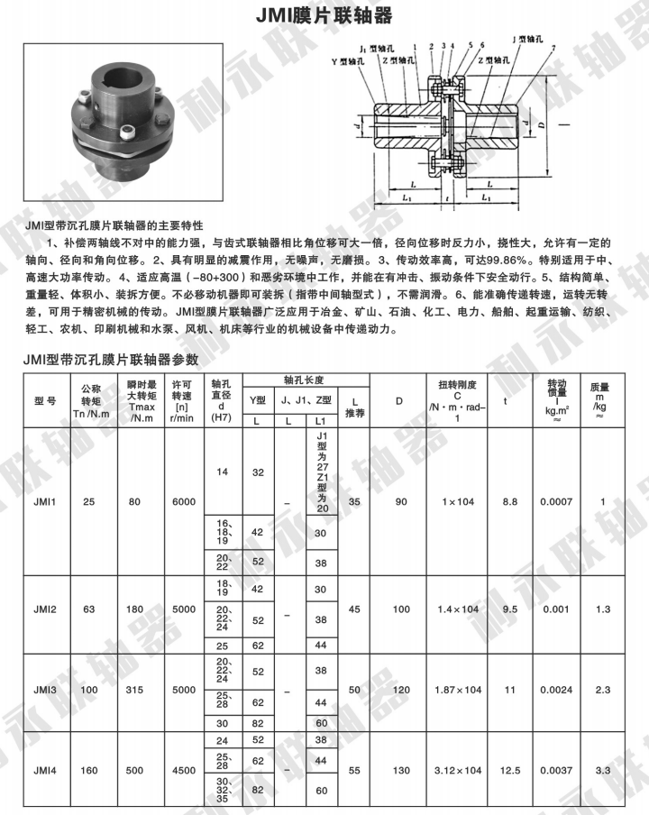 6、能準確傳遞轉速,運轉無轉差,可用于機械的傳動。JMI型膜片聯軸器廣泛應用于冶金、礦山、石油、化工、電力、船舶、起重運輸、紡織、輕工、農機、印刷機械和水泵、風機、機床等行業的機械設備中傳遞動力。