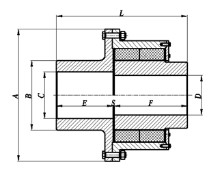型號 | 公稱扭矩(Nm) | 許用轉速(rpm) | A (mm) | B (mm) | C/D (mm) | E/F (mm) | S (mm) | L (mm) | 重量(Kg) | 轉動慣量(kg.) |