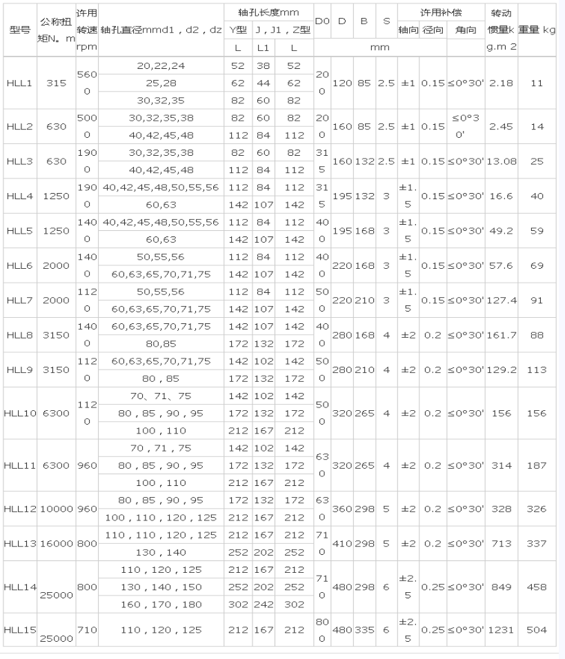 本聯軸器已列為標準GB5014-85,適用于各種機械聯接兩同軸線的傳動軸,通常用于動頻繁的高低速運動。工作溫度為-20~+80℃;傳遞公稱扭矩為40~20000N.m。